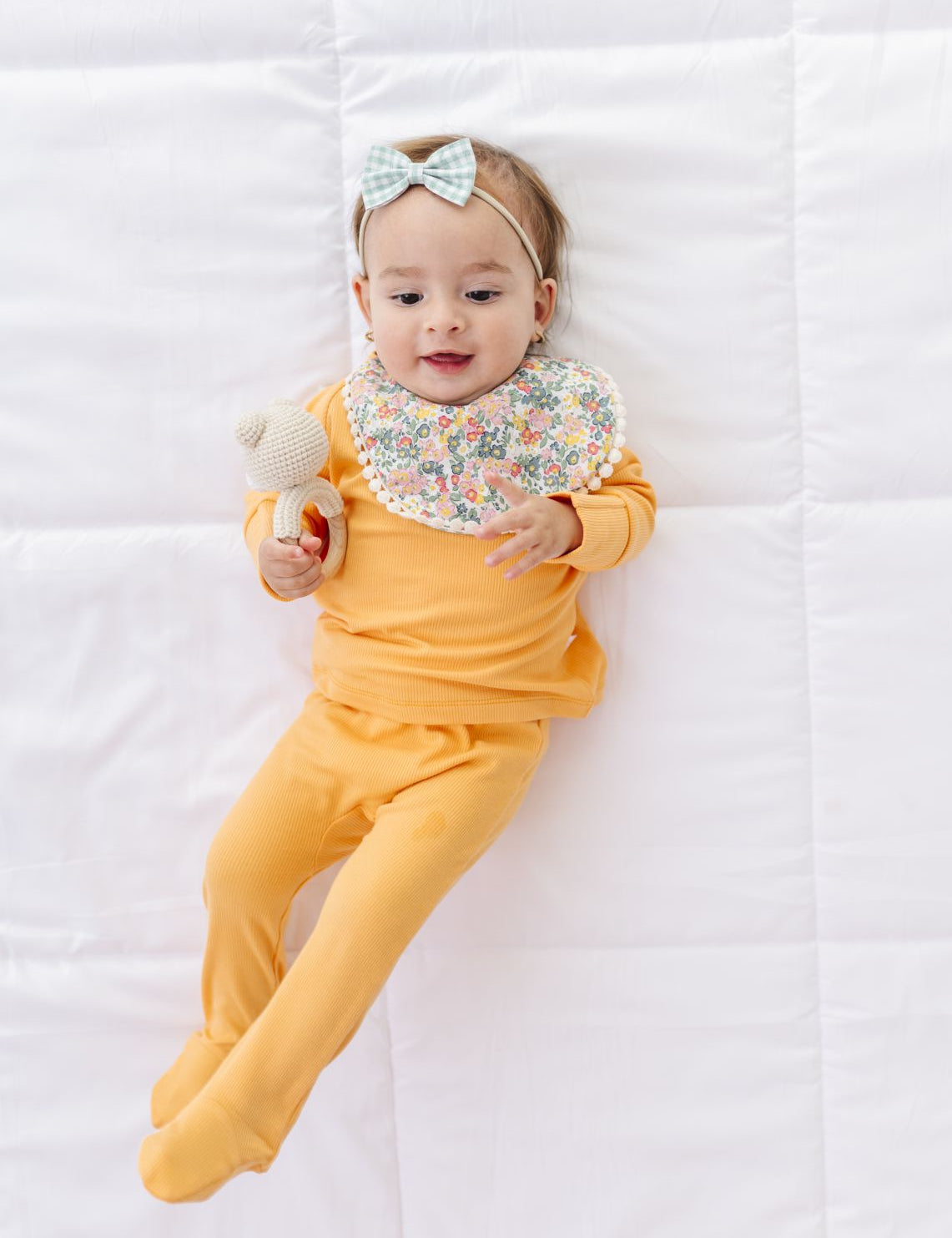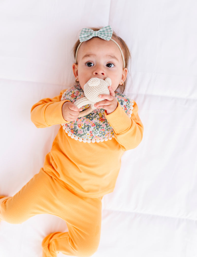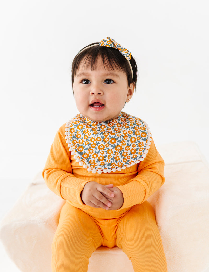 Floral Reversible Bib set with Bows - Yellow