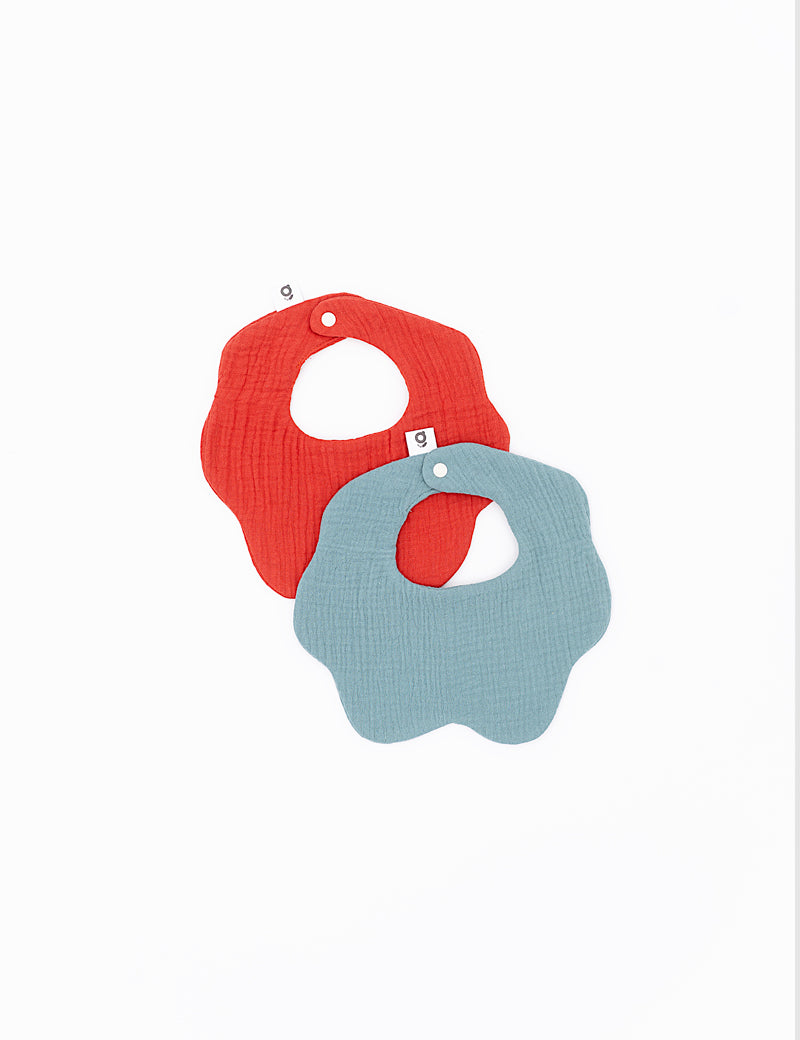 Soft Muslin Bibs – 100% Organic Cotton | Blue and Terracota