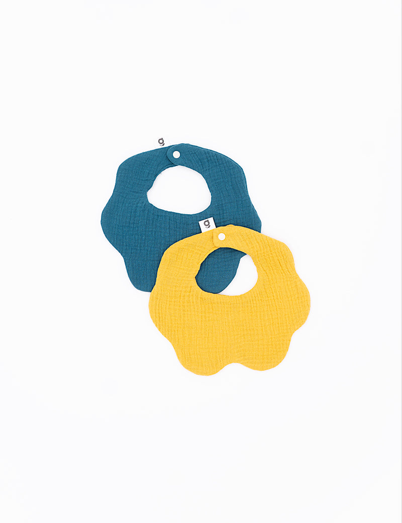 Soft Muslin Bibs – 100% Organic Cotton | Yellow and Opal