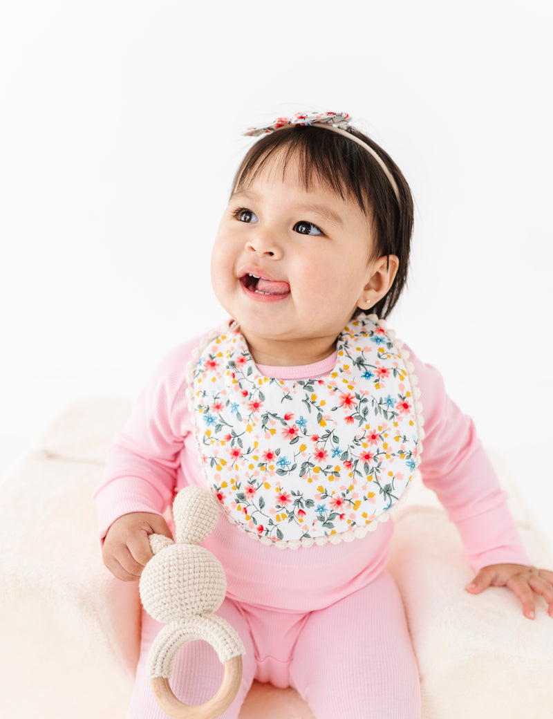 Floral Reversible Bib set with Bows - Pink