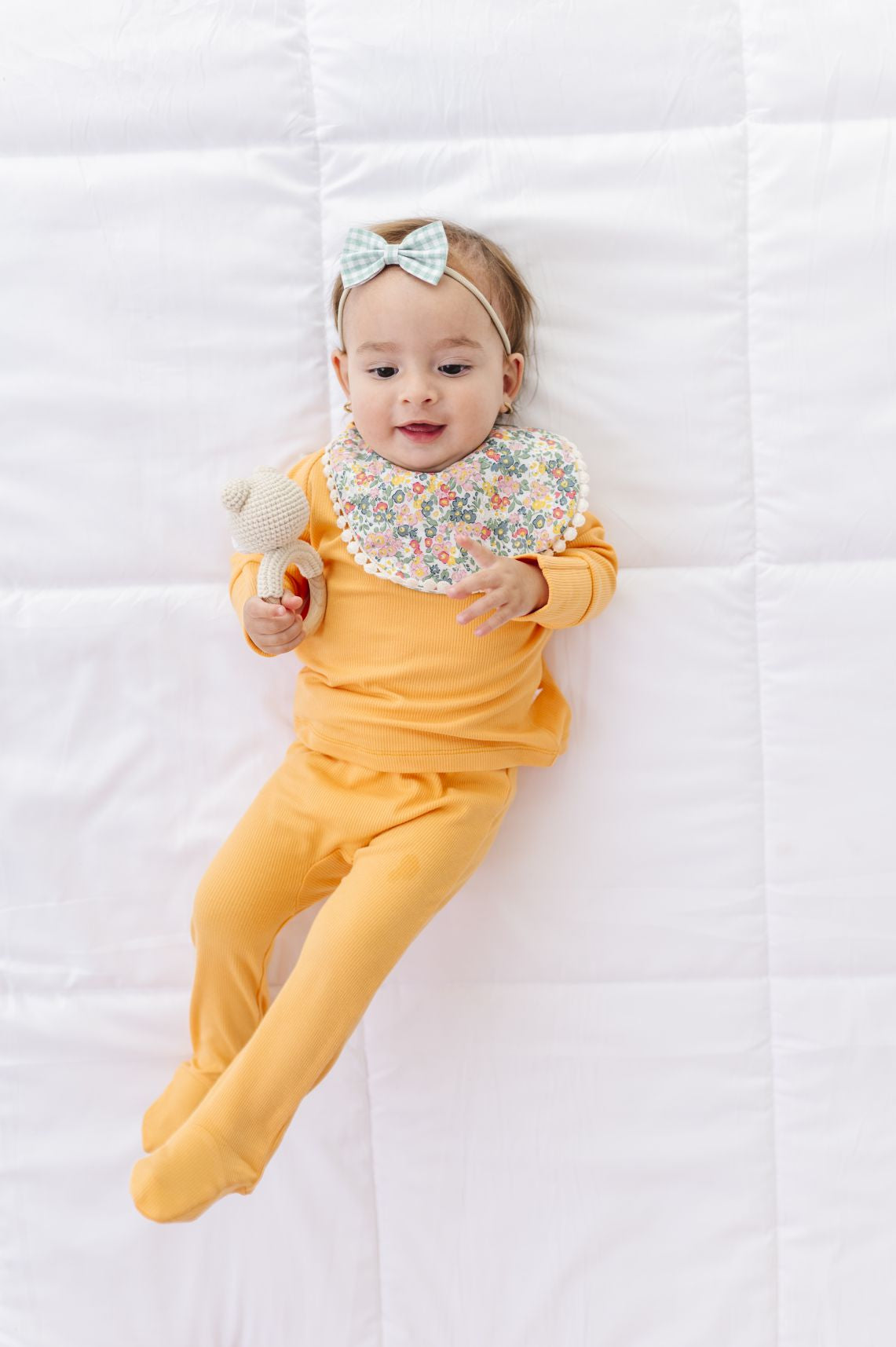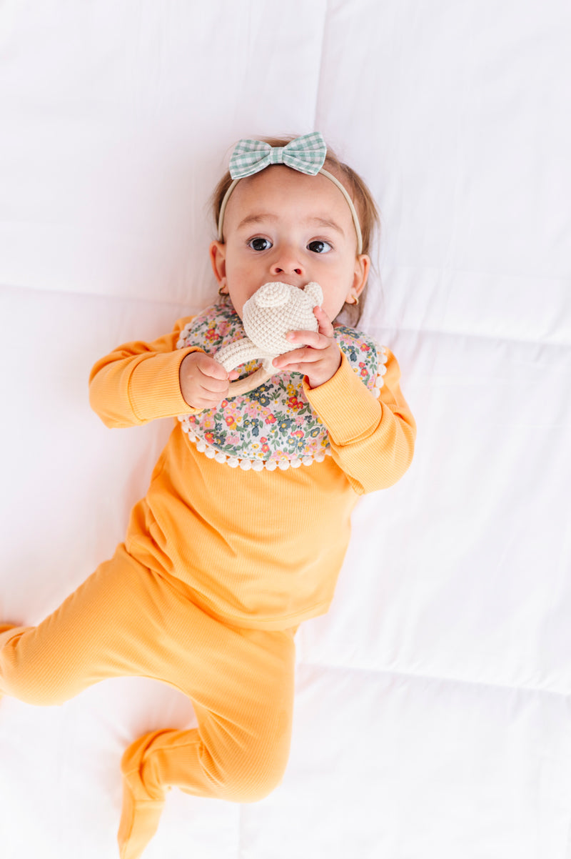 And the best part? Every bib comes with a matching bow, so your baby can drool in style whether it’s snack time, playtime, or photo time.
