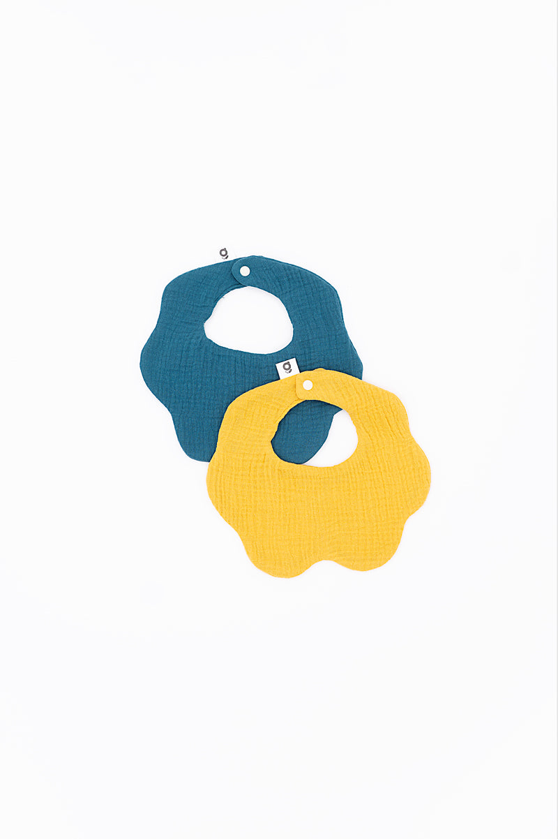 Soft Muslin Bibs – 100% Organic Cotton | Blue and Yellow