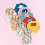 Floral Reversible Bib set with Bows - Pink