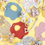 Mealtime meets cuteness with our reversible bibs, made from 100% cotton fabric and designed with love for stylish little ones. Each bib features two adorable prints, floral on one side, checkered on the other so you get two looks in one!