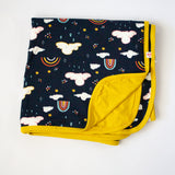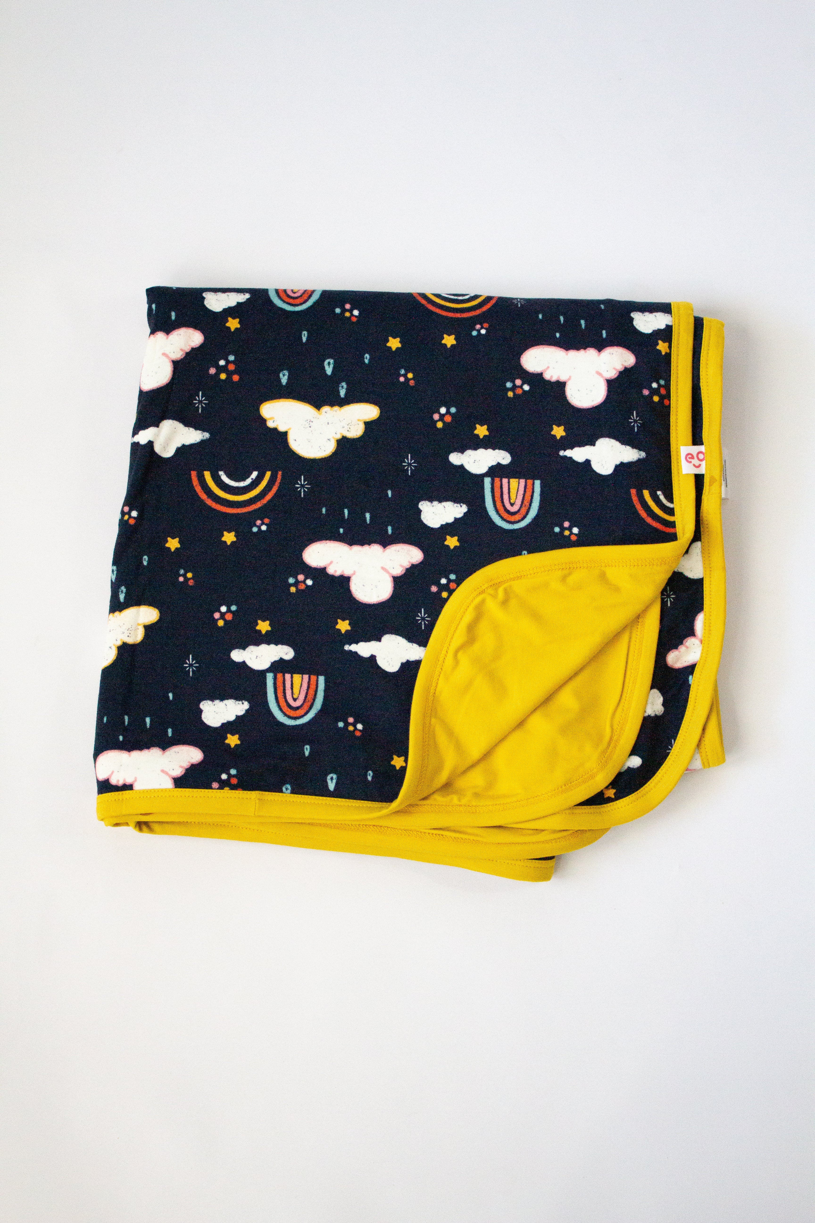 Snuggles, naps, and playtime just got sweeter with our Double Layered Bamboo Blanket - crafted for softness, warmth, and everyday magic. Made from buttery-soft, breathable bamboo viscose, this reversible blanket features a playful print on one side and a solid color on the other, giving you two looks in one cozy bundle.