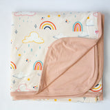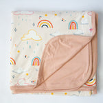 Snuggles, naps, and playtime just got sweeter with our Double Layered Bamboo Blanket - crafted for softness, warmth, and everyday magic. Made from buttery-soft, breathable bamboo viscose, this reversible blanket features a playful print on one side and a solid color on the other, giving you two looks in one cozy bundle.