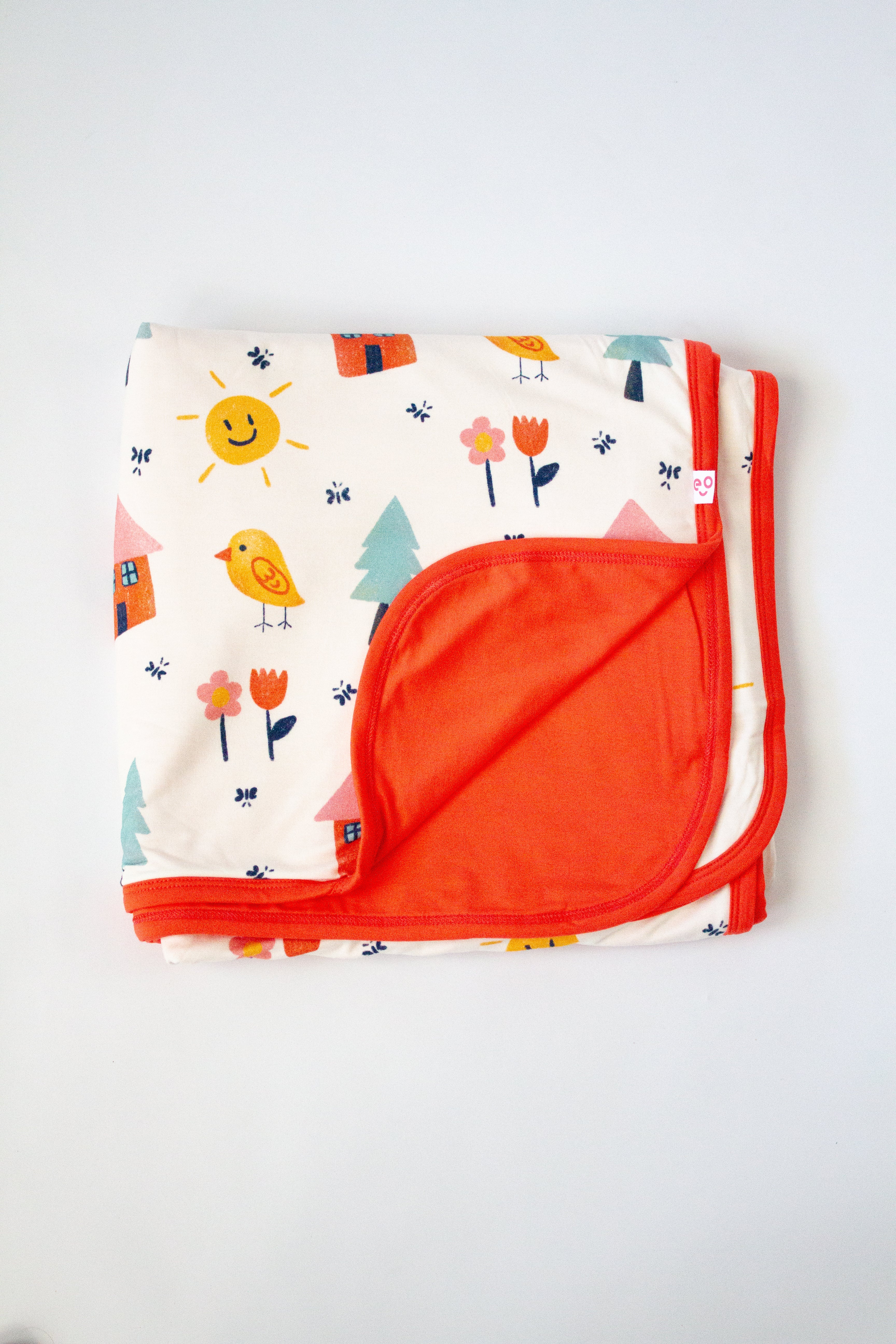 Snuggles, naps, and playtime just got sweeter with our Double Layered Bamboo Blanket - crafted for softness, warmth, and everyday magic. Made from buttery-soft, breathable bamboo viscose, this reversible blanket features a playful print on one side and a solid color on the other, giving you two looks in one cozy bundle.