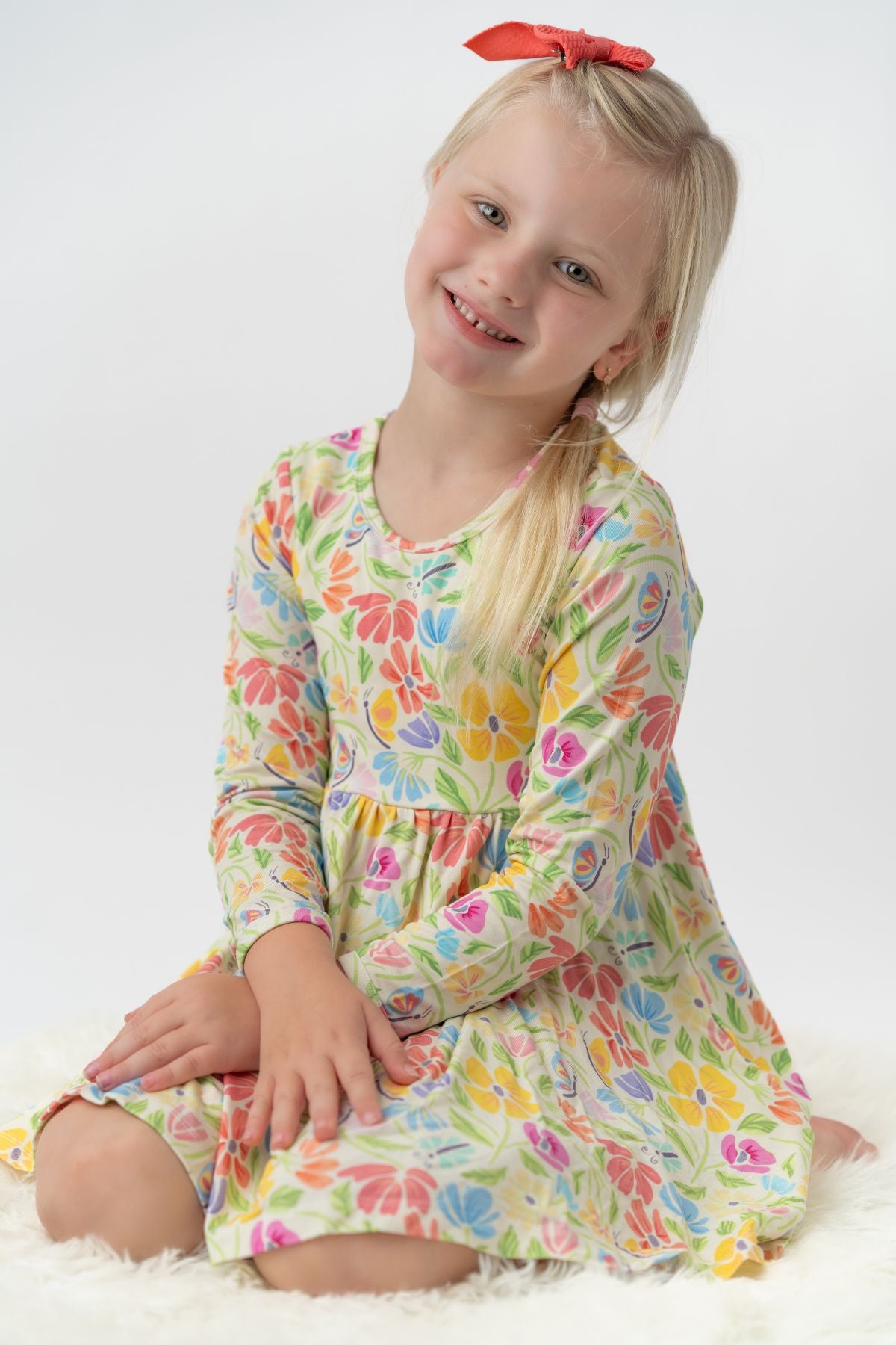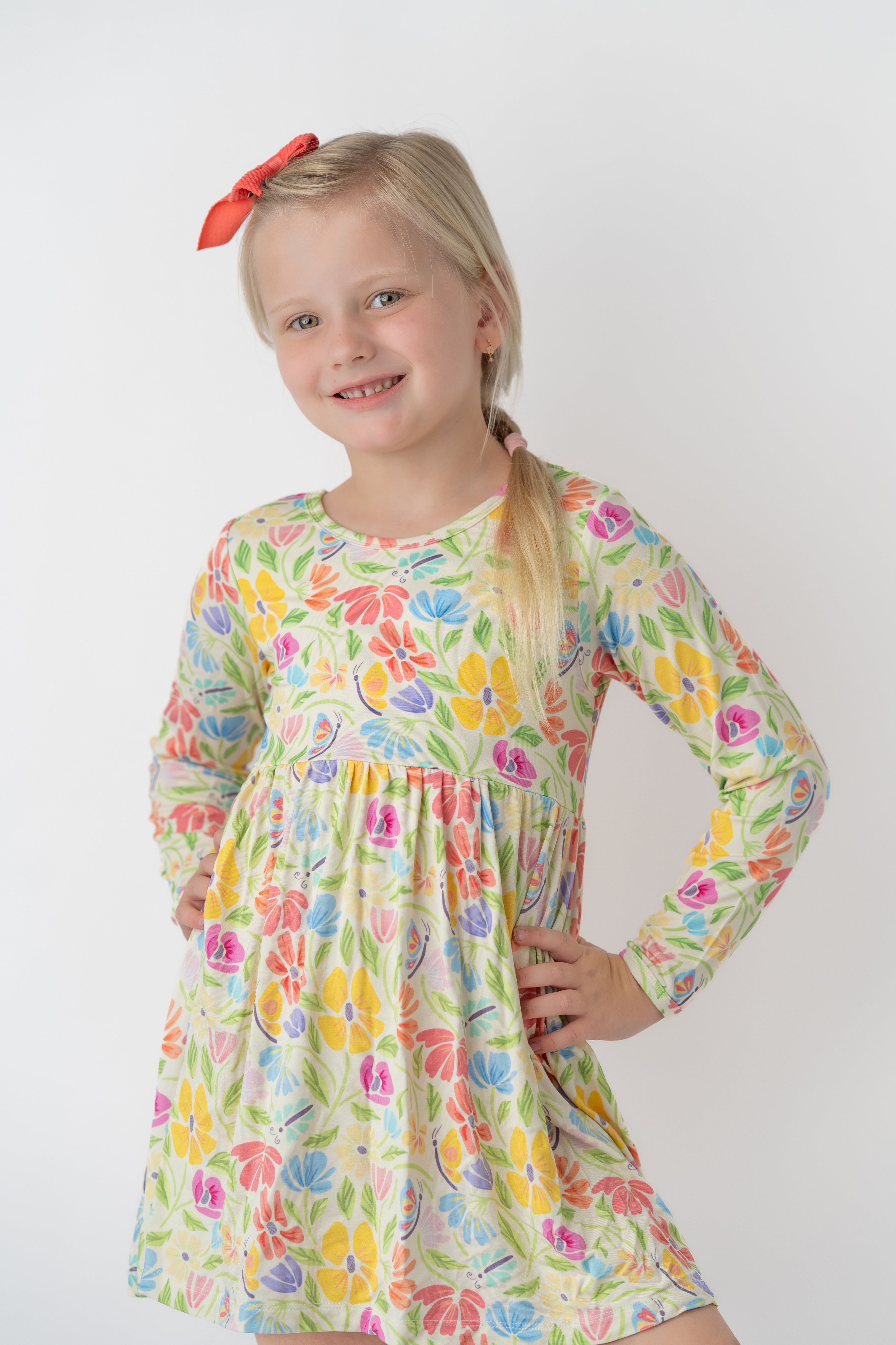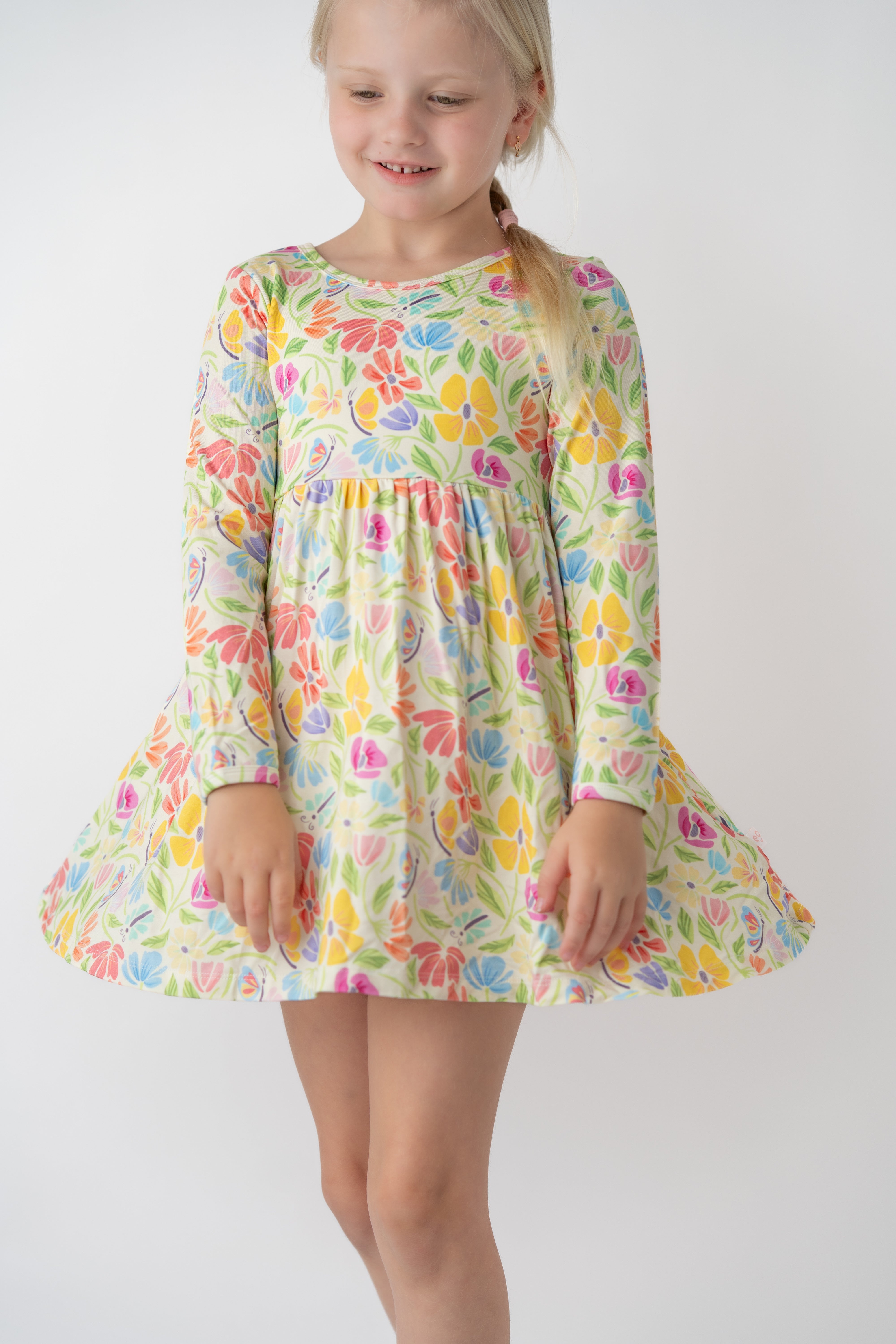 Made for twirls, giggles, and all-day play, our Flutter Twirl Dress is a little one’s wardrobe essential. Crafted from buttery-soft, breathable bamboo fabric, it’s designed to move with your child - whether they’re dancing in the living room or exploring the outdoors.