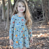 With flutter sleeves and a full, flowy skirt, this dress delivers a sweet, comfy fit that kids love to wear again and again. Gentle on sensitive skin and stretchy for easy movement, it’s perfect for everyday adventures, preschool days, or weekend outings.