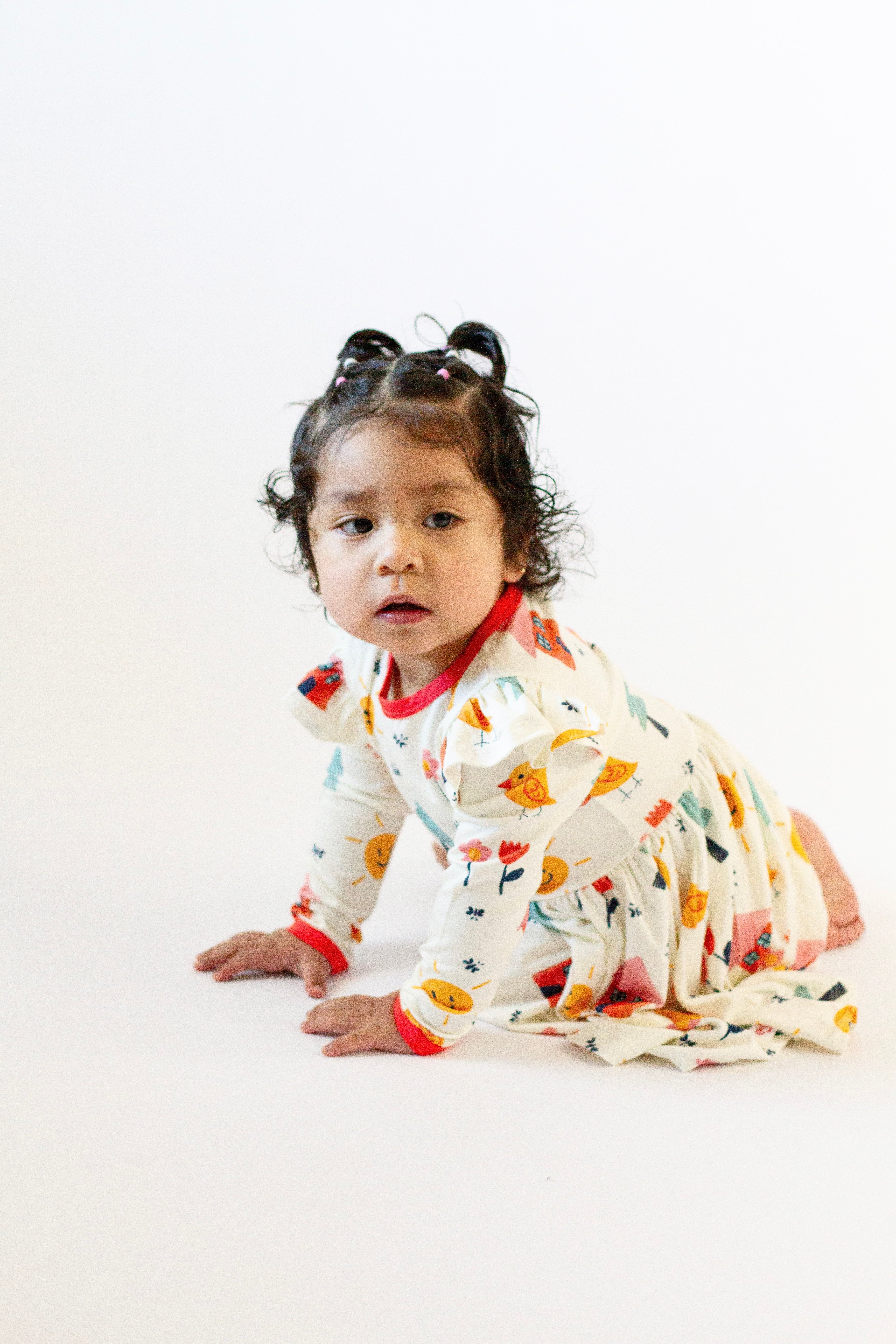 Let your little one twirl in comfort with our Flutter Twirl Dress with Built-In Bodysuit - designed for playful days, cozy moments, and everything in between. With its flutter sleeves and a twirl-worthy skirt, this dress adds a dose of charm to everyday adventures.