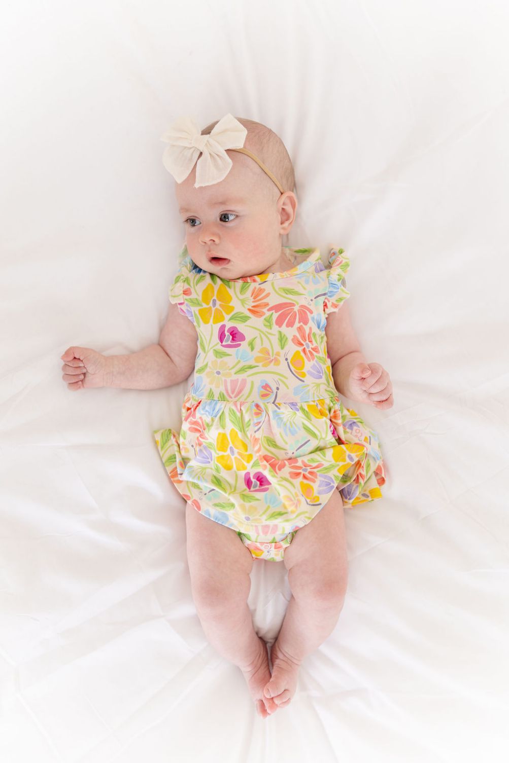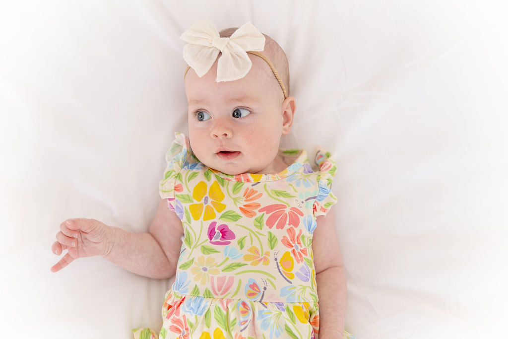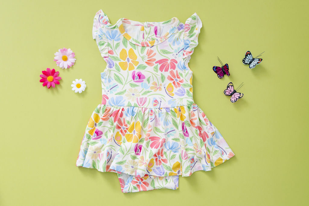 Let your little one twirl in comfort with our Flutter Twirl Dress with Built-In Bodysuit - designed for playful days, cozy moments, and everything in between. With its flutter sleeves and a twirl-worthy skirt, this dress adds a dose of charm to everyday adventures.