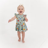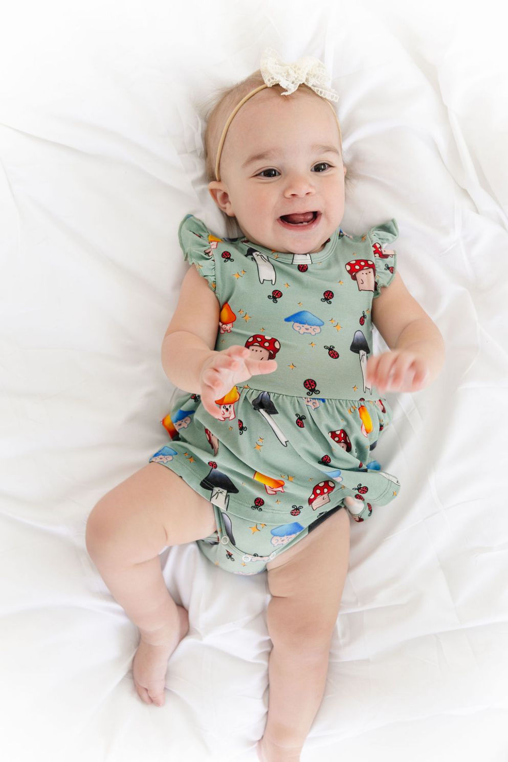 Let your little one twirl in comfort with our Flutter Twirl Dress with Built-In Bodysuit - designed for playful days, cozy moments, and everything in between. With its flutter sleeves and a twirl-worthy skirt, this dress adds a dose of charm to everyday adventures.