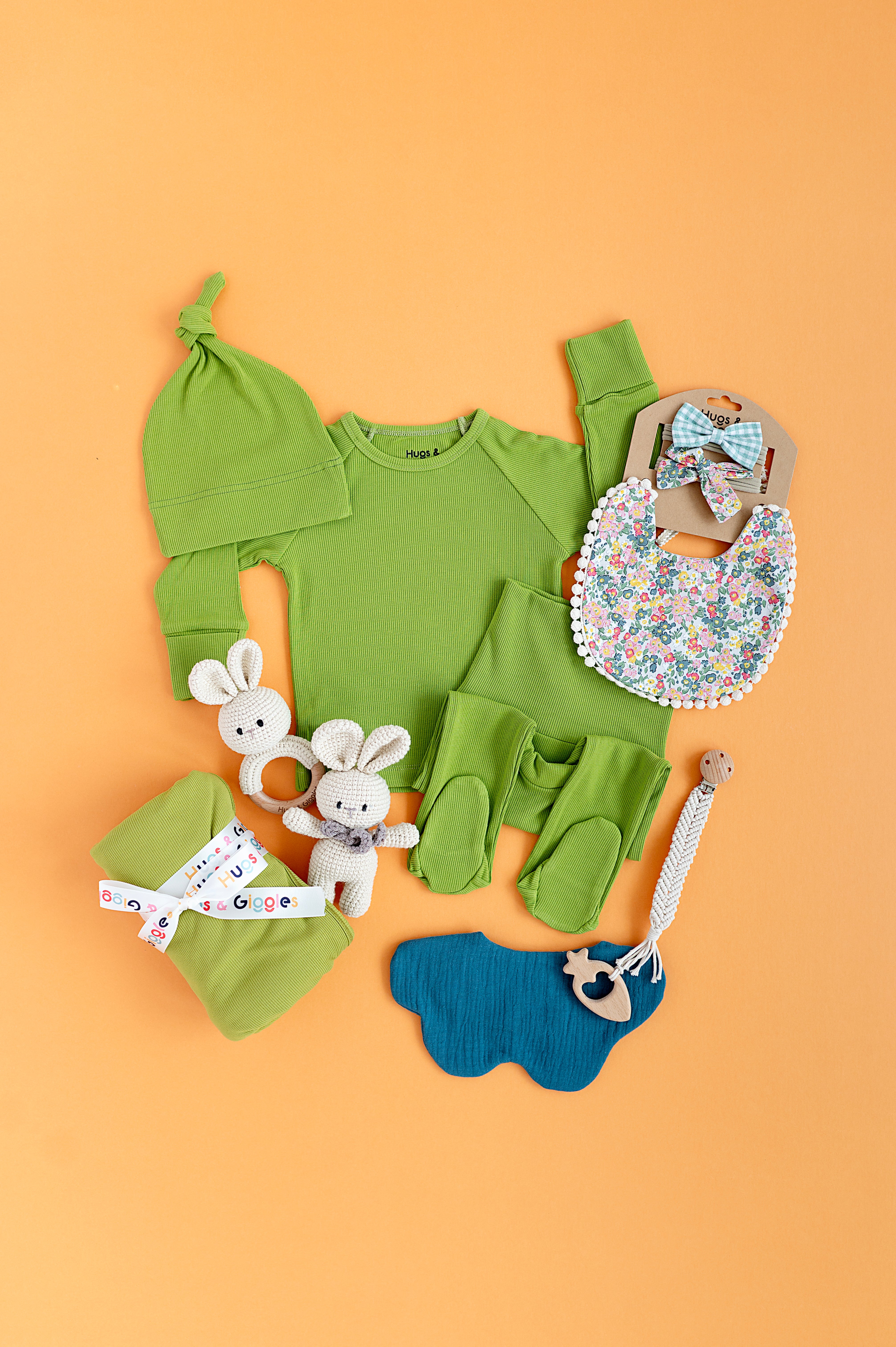 • 1 Ribbed Bamboo Swaddle Blanket (47" x 47") – breathable, gentle, and perfect for cozy snuggles