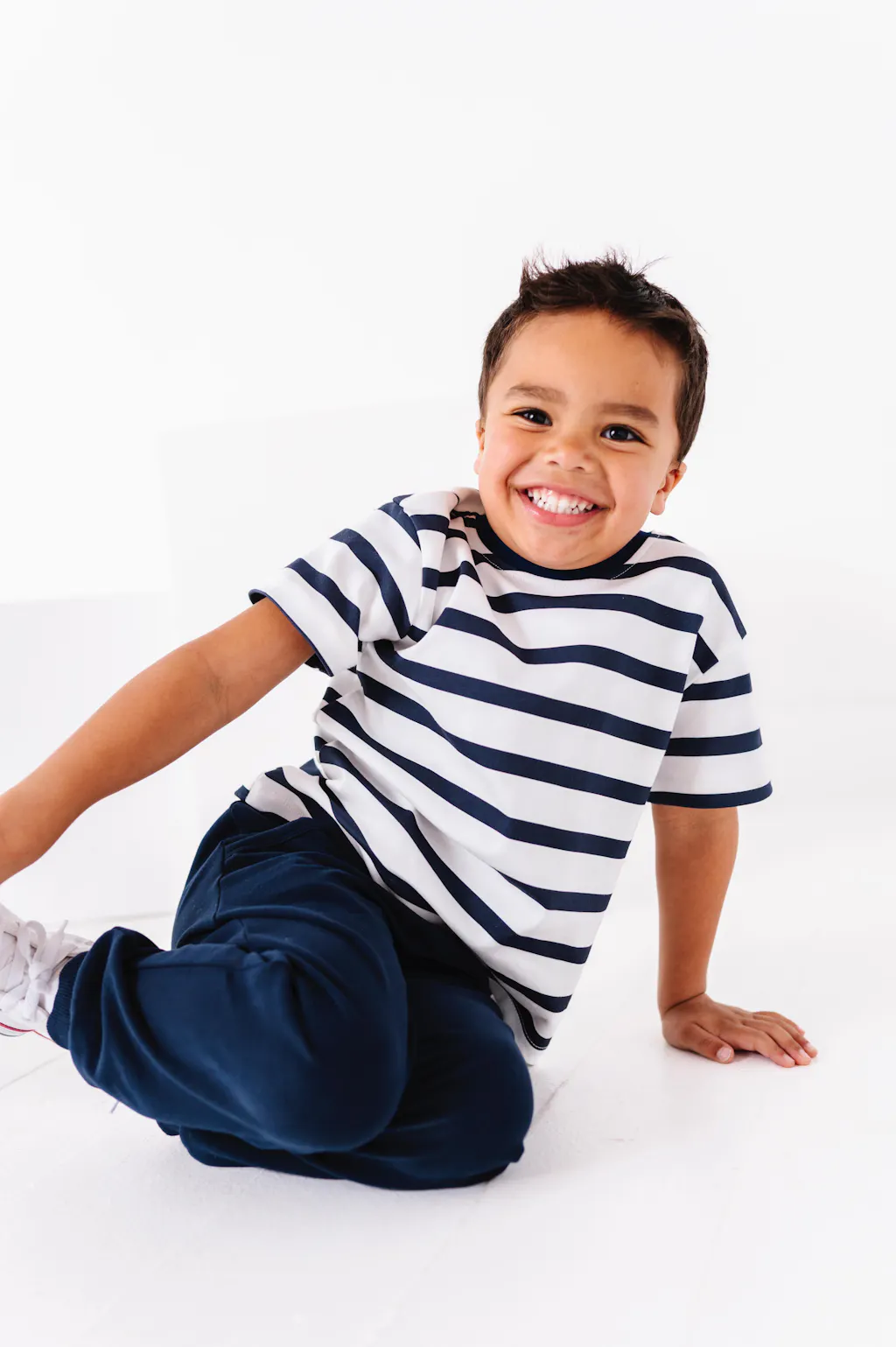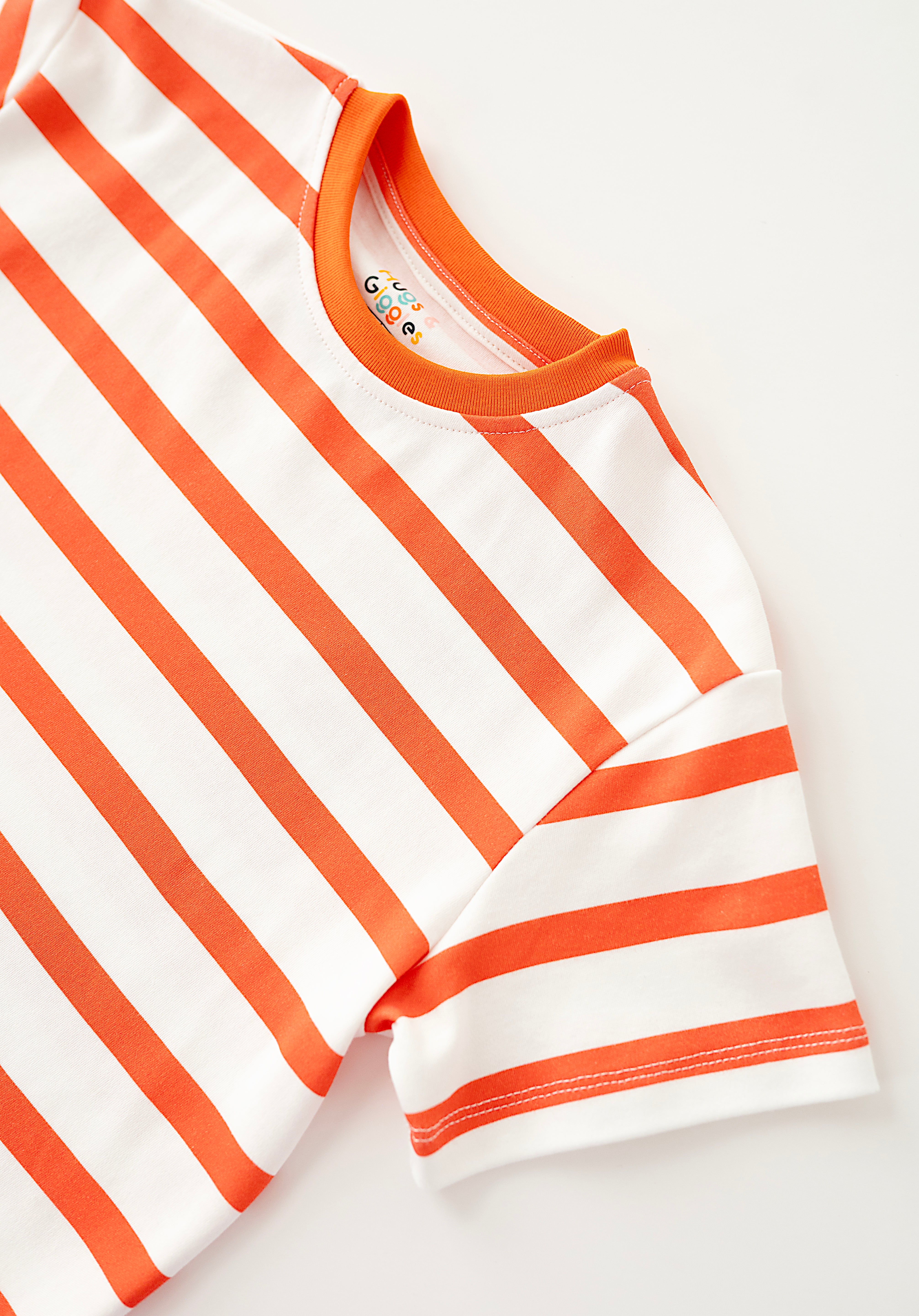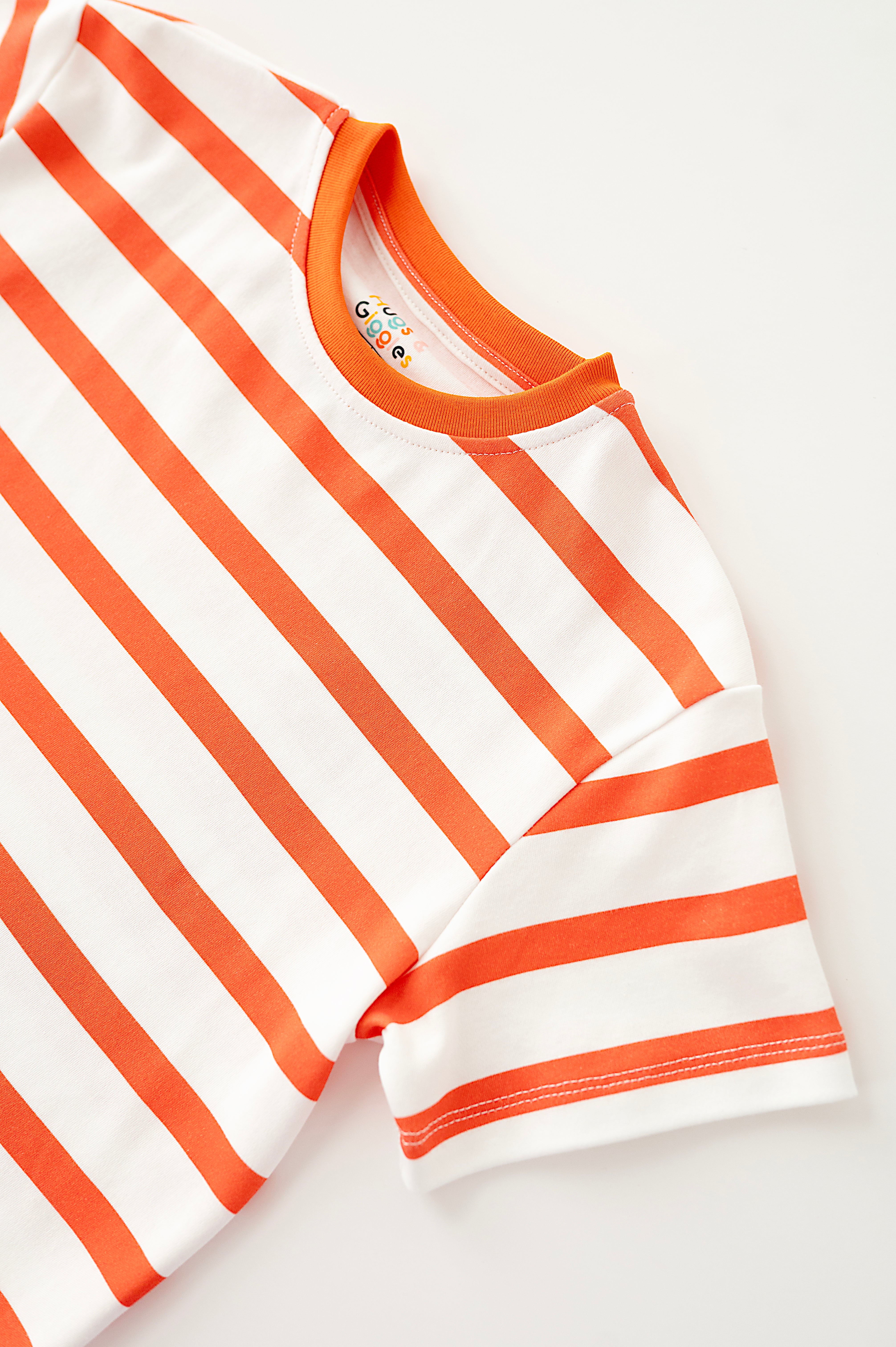 Designed with a classic striped pattern and relaxed fit, it blends timeless style with everyday durability. Ideal for school, playdates, or lounging at home, this organic cotton t-shirt for kids is gentle on sensitive skin and made to last wash after wash.