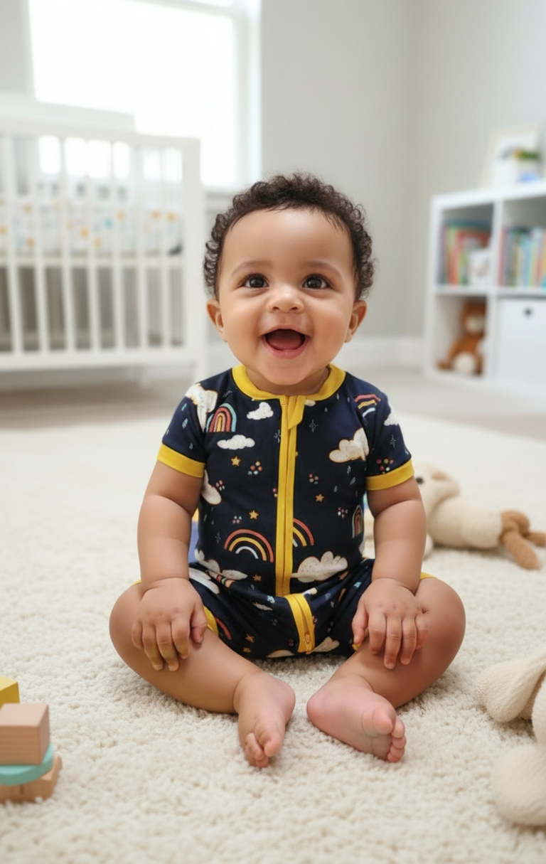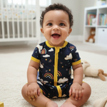 Meet your new go-to for easy dressing and cozy play - our Shorty Zipper Romper is designed for quick changes, warm days, and nonstop cuteness. Made from ultra-soft, breathable bamboo fabric, this one-piece wonder keeps your little one comfy whether they’re napping, crawling, or cruising around the house.