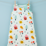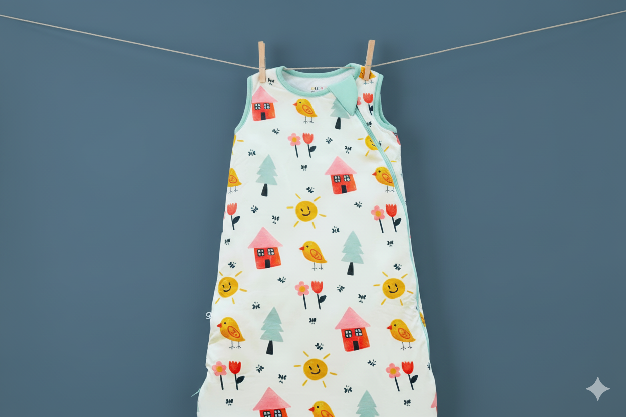 The roomy, wiggle-friendly shape allows for natural movement while keeping your baby comfortably cocooned. A smooth front zipper makes nighttime changes a breeze, and the adorable prints add a touch of playfulness to your bedtime routine.