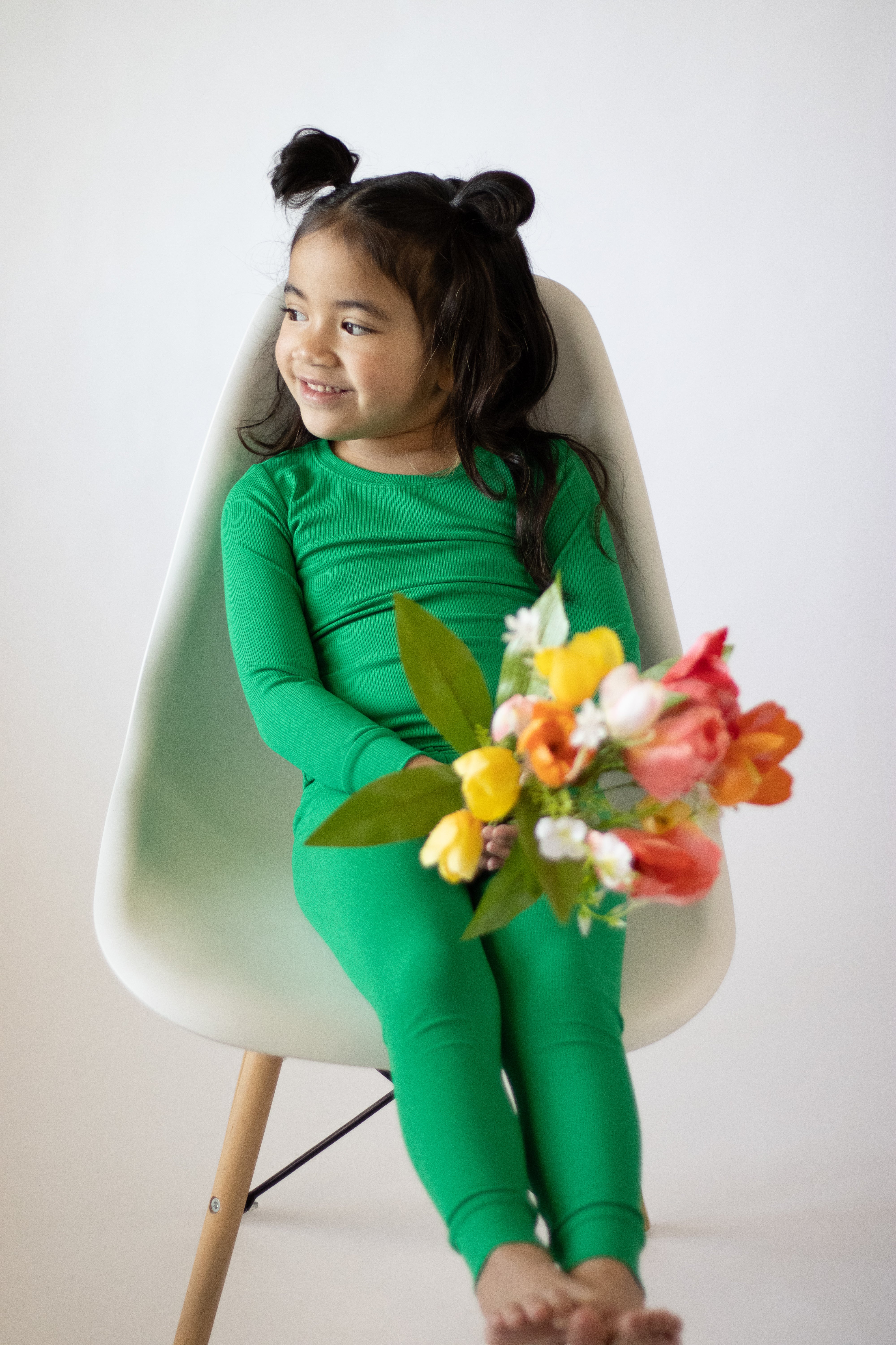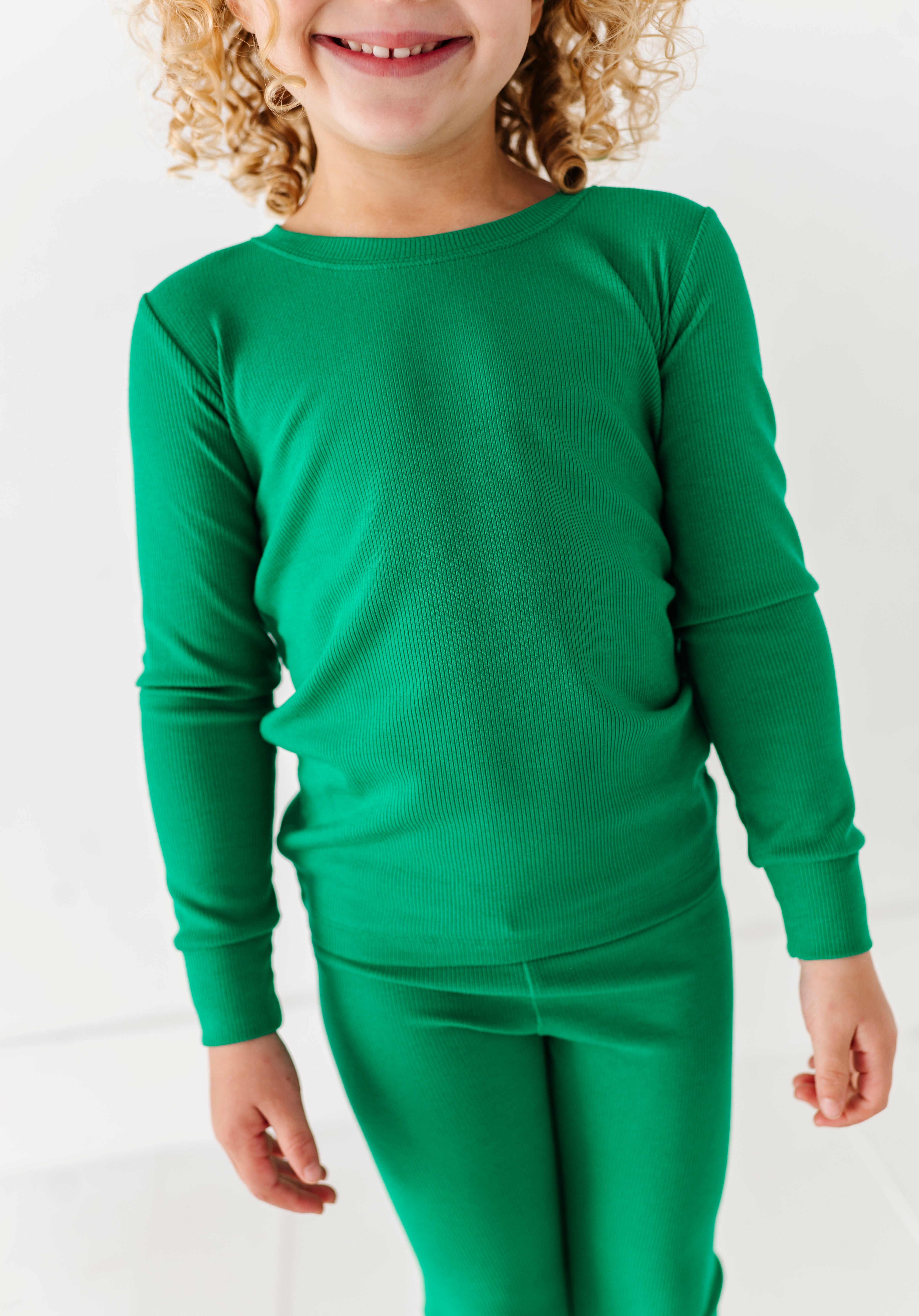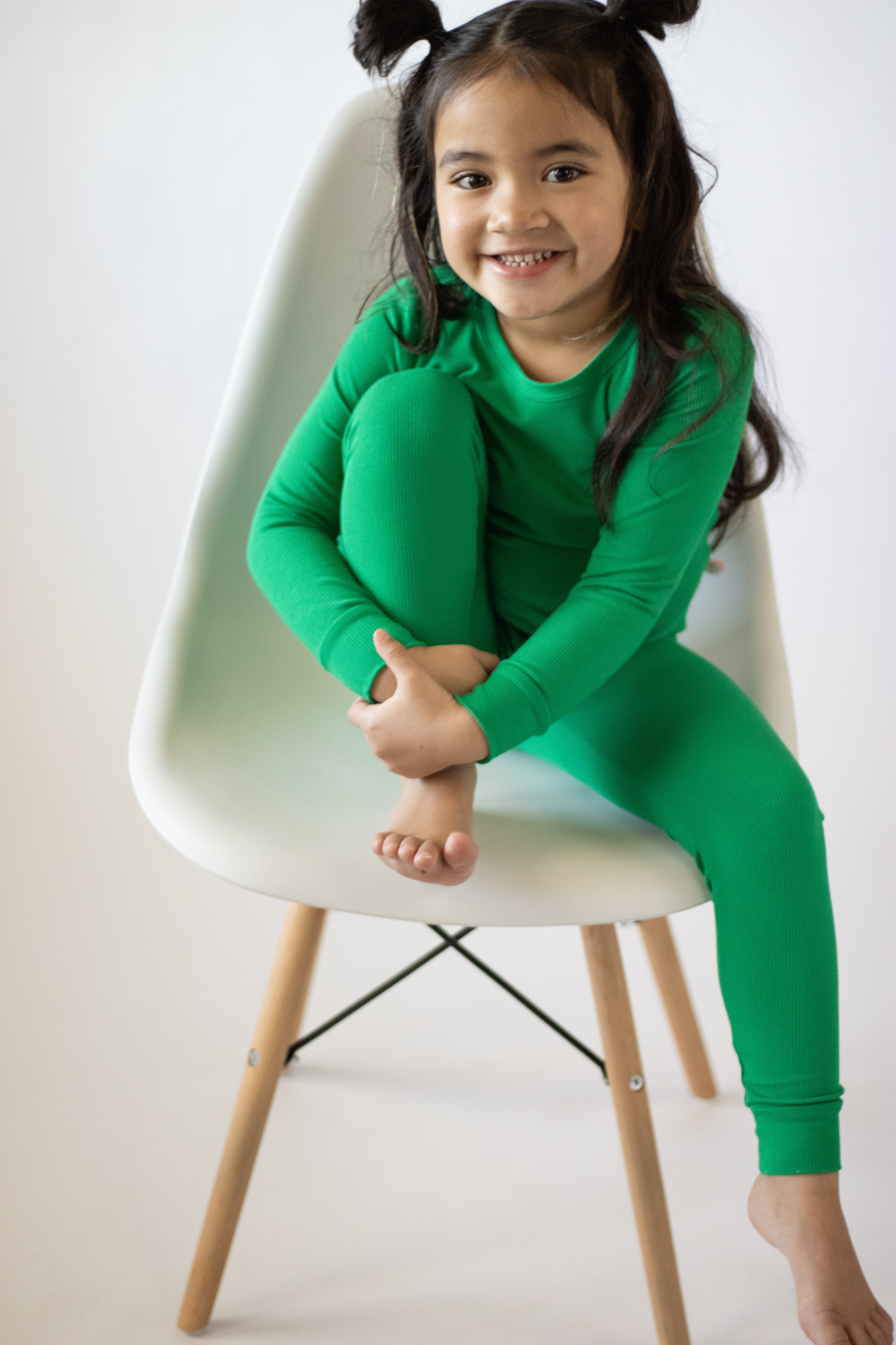 Cozy, breathable, and made for all-day play - our Kids’ Bamboo Ribbed PJ Pants Set is perfect for everything from morning snuggles to nighttime routines. Crafted from ultra-soft, eco-friendly bamboo ribbed fabric, this two-piece set includes a relaxed-fit long sleeve top and matching full-length pants for the ultimate in year-round comfort.