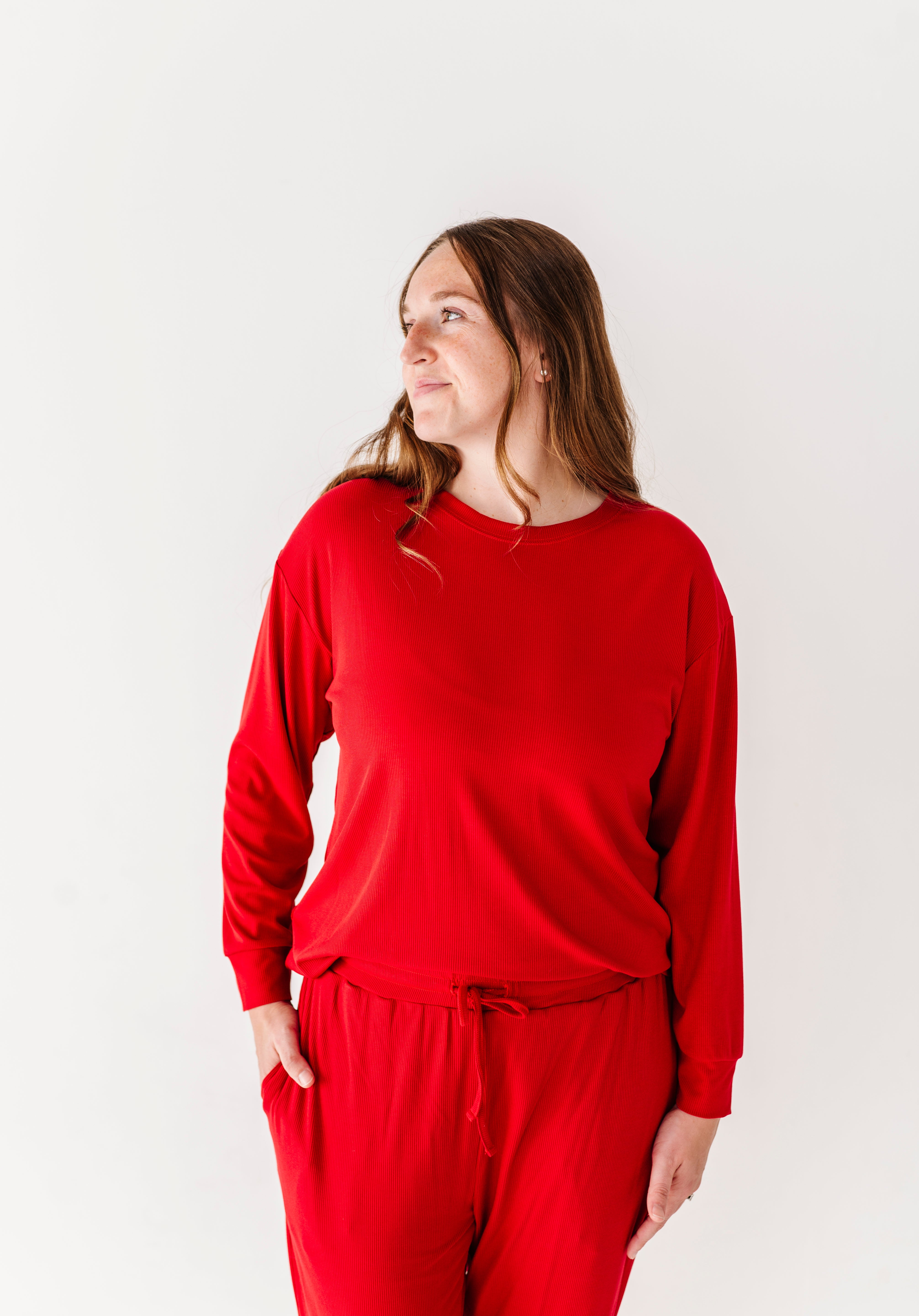 Designed in our signature ribbed bamboo fabric, this top feels buttery-soft, breathable, and gentle on even the most sensitive skin. With a flattering, easygoing fit, it’s made for slow mornings, cozy nights, and every snuggly moment in between.